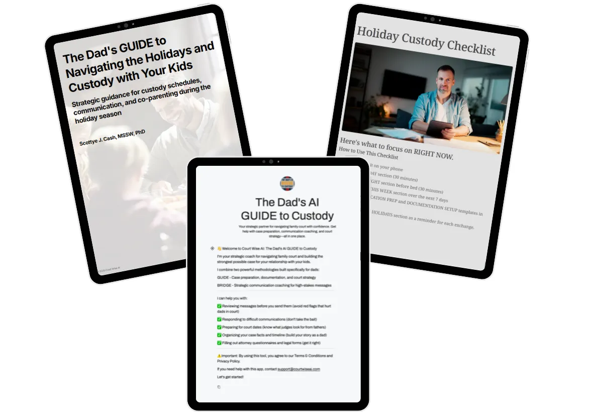 The holidays are the highest-conflict period of the year for divorced and divorcing dads. Schedule changes. Inflammatory texts. Family pressure. Gift-giving competition. New partners. Every interaction is a potential landmine.
